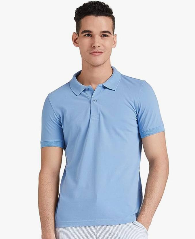 Men Solid Polo Neck Cotton Blend Light Blue T-Shirt