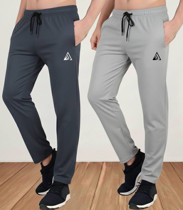 Pack of 2 Men Solid Grey, Multicolor Track Pants