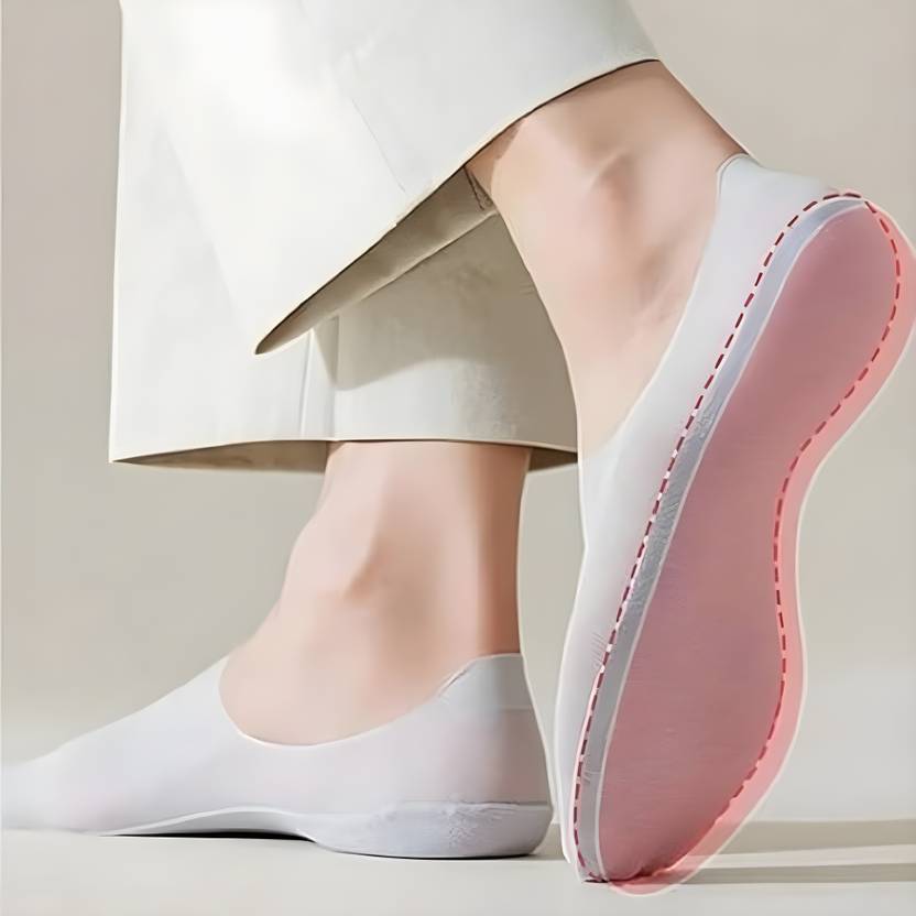 These invisible socks are made from ultra-thin, stretchable fabric that fits snugly on your feet for a barely-there feel. Designed with a low-cut silhouette, they stay hidden inside shoes like loafers, sneakers, or flats. The soft, breathable material keeps feet comfortable and fresh all day. A non-slip grip at the heel helps prevent sliding and ensures a secure fit during movement.