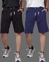 Pack of 2 Solid Men Black, Dark Blue Basic Shorts