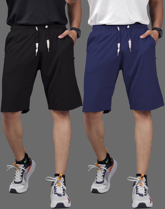 Septem Solid Men Black, Dark Blue Basic Shorts