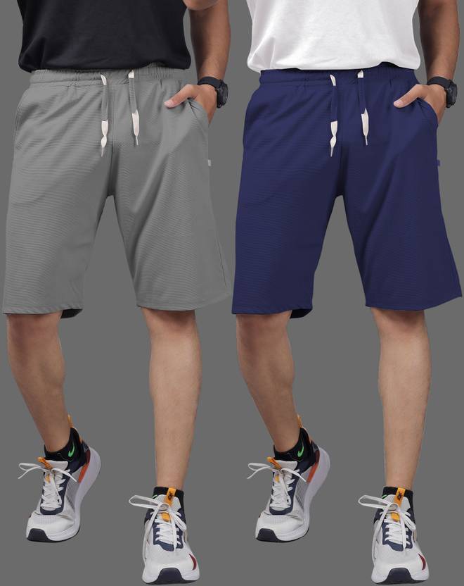Pack of 2 Solid Men Dark Blue, Dark Grey Basic Shorts