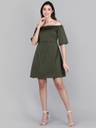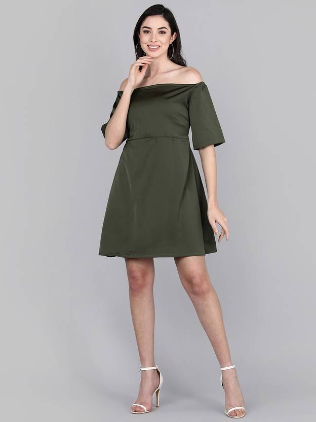 Women A-line Green Above Knee/Mid Thigh Length Dress
