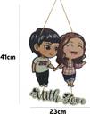 Couple Wall Hanging For Home Decor | Couple Gifts For Valentine's Day | Items For Girlfriend Boyfriend Husband Wife | Art Piece For Bedroom,Celebrate love and joy with this adorable With Love Couple Wall Hanging. Featuring a chibi-style cartoon couple holding hands, with the phrase "With Love" hanging below, this decorative piece is perfect for couples, newlyweds, or as a heartwarming gift for your special someone.