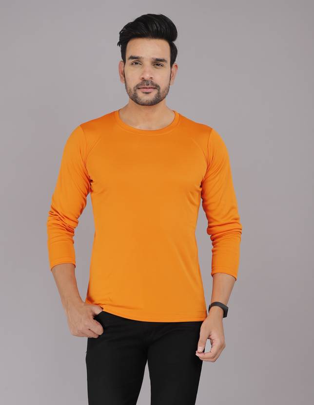 seri choice Men Solid Round Neck Polyester Orange T-Shirt