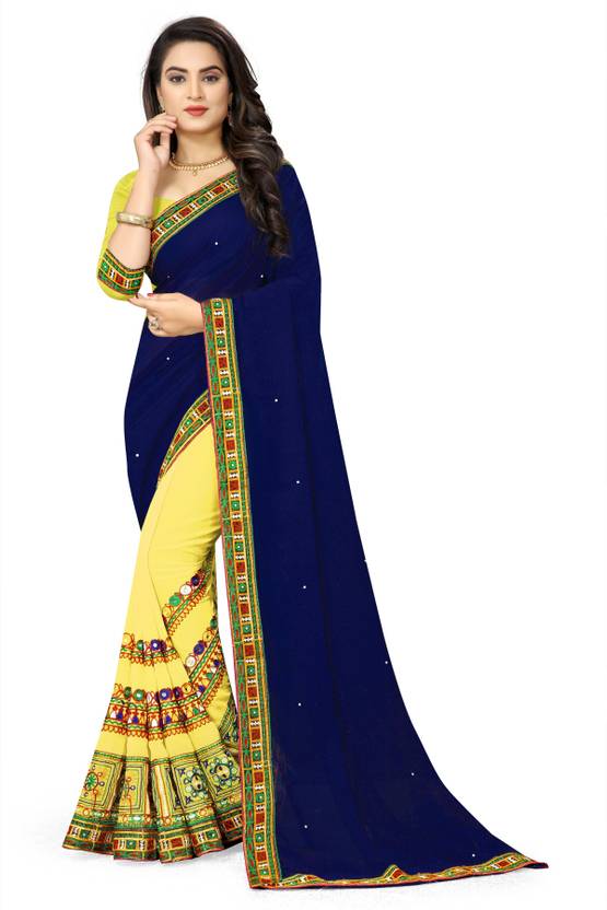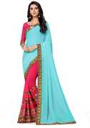 Serona Fabrics Designer Sarees || Saree Fabric : Georgette , Blouse Fabric : Georgette || Features: Designer Embroidery Work Embellishment || Type : Designer Embroidery Georgette Half & Half Saree || Pattern : Flower Pattern Embroidery Work Saree || Transparency : Good Fabric Saree || Dimension : Saree Length - 5.5 MTR , Blouse Length - 0.8 MTR || Pack of : 1 Saree : 1 Blouse || This Embroidred Saree Concept Has been Made By Serona Fabrics Designer For Wedding Engagement Or Any Occasion Which Will Add Glamour To Your Beauty