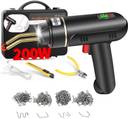 VERSATILE USES: This Plastic Welder is designed to repair up to 98% of plastics available in the market. Ideal for mending car bumpers, dashboards, lamp holders, radiators, and various automobile and motorcycle plastic components, ensuring a broad spectrum of applications.SWIFT HEATING MECHANISM: The upgraded 200W high performance Welding Machine features a rapid heat-up function, taking only 1-2 seconds. With an integrated light for precision, it ensures staples fuse into the plastic without penetrating the board, streamlining the repair process.DURABLE STAPLES: Equipped with stainless steel staples available in 4 distinct types, 200pcs in total, our kit ensures rust-free longevity. The innovative design provides enhanced load stability, allowing for a robust repair that withstands both shock and torque.COMFORTABLE & SIMPLE USAGE: Air dryer shape design paired with a comfortable handle and control button means long hours of operation without discomfort. This heat stapler Kit is designed for efficiency, promising quick fixes without the hassle, making it accessible even to novices. USB rechargeable design, built in 5000mAh rechargeable battery, can be powered by powerbank or connecting any power adapter.COMPLETE REPAIR KIT: Except the plastic welder, there are also coming with 400pcs staplers, a utility cutter, a piler. The included utility cutter is sharp and durable, perfect for trimming excess plastic and ensuring a neat, professional finish. Whether it's for automotive bodywork, home appliance fixes, or other plastic components, this kit ensures that you have everything they need to complete the job with confidence and ease.