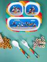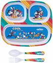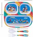 Servewell Pack of 3 Melamin 3 Part Rect Plate and Fork & Spoon 16 cm Set 3 pc - Mickey Dinner Set (Multicolor)