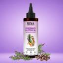 Step 2: Distribute a few drops through the hair lengths and ends, let sit for 30 minutes, then wash with a Sesa Ayurvedic Anti-Hairfall shampoo.