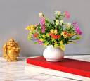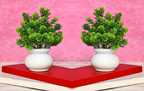 Set of 2 Pcs Stylish Ficus Leaf Bonsai Flower Plant Perfect for Decoration | Bonsai Artificial Plant with Pot (16.5 cm, Multicolor)