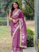 SEVAK SAREES Woven, Solid/Plain Banarasi Tissue Saree (Magenta)