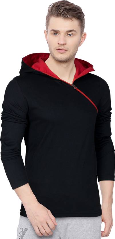 Seven Rocks Solid Men Hooded Neck Black T-Shirt