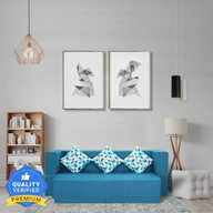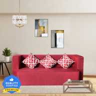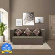 Seventh Heaven 72x44x14 inch Jute Fabric with 3 Cushions 3 Seater Double Foam Pull Out Sofa Cum Bed (Finish Color - Brown Delivery Condition - Pre-assembled)