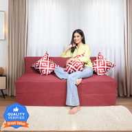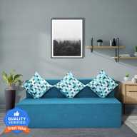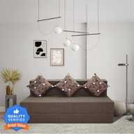 Seventh Heaven 6*6 Jute Fabric Washable Cover with 3 Cushions 4 Seater Double Foam Fold Out Sofa Cum Bed (Finish Color - Light Grey Delivery Condition - Pre-assembled)