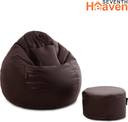 Seventh Heaven 4XL Filled Bean Bag with Cushion and Footrest - Scratch Resistant Premium Leatherite Bean Bag Chair With Bean Filling (Brown)