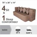 Seventh Heaven 78x36x14 inch Jute Fabric with 4 Cushions 4 Seater Single Foam Fold Out Sofa Cum Bed (Finish Color - Brown Delivery Condition - Pre-assembled)