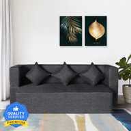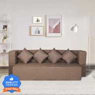 Seventh Heaven 78x36x14 inch Jute Fabric with 4 Cushions 4 Seater Single Foam Fold Out Sofa Cum Bed (Finish Color - Blue Delivery Condition - Pre-assembled)