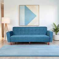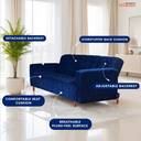Seventh Heaven Lisbon Wooden, Chenille Molfino Fabric 72X44X16 3 Seater Double Solid Wood Pull Out Sofa Cum Bed (Finish Color - Blue Delivery Condition - DIY(Do-It-Yourself))