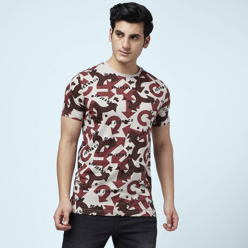 Comfortable to wear and stylish in look this printed T-shirt is a great addition to your casual closet. It has a crew neck, half sleeves, and an all-over unique graphic print. Made from a top-notch knit fabric that is intensely soft and gives comfort all day long.