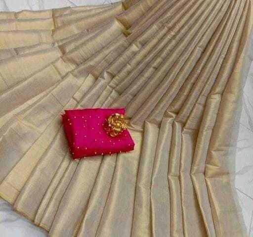 Saree Fabric : Cotton Tissue Silk || Blouse Fabric : Art Silk ||, Saree Work : Plain || Blouse Work : Beads(Moti), Saree Length - 5.50 Mtr , Blouse Length : 0.80 Mtr (Unstitched)