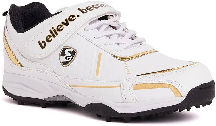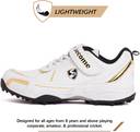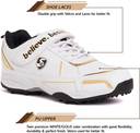 CENTURY 5 0 Cricket Shoe, Size: 9 UK / 10 US / 43 EU | Lightweight | Soft spikes Cricket Shoes For Men (White, Gold, Black , 9)