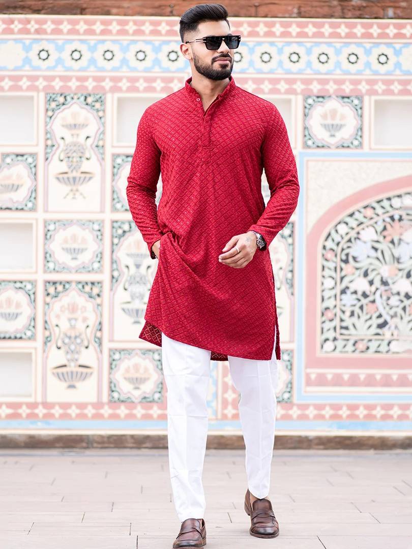 SG LEMAN Men Solid Straight Kurta (Orange)