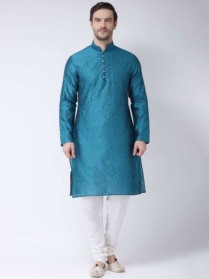 SG LEMAN Men Solid Straight Kurta (Blue)