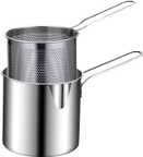 SG-Mart 1200ml Stainless Steel Frying Pot | Detachable Mini Fryer Pan with Strainer | Fry Pan 12 cm diameter 1.2 L capacity (Stainless Steel)