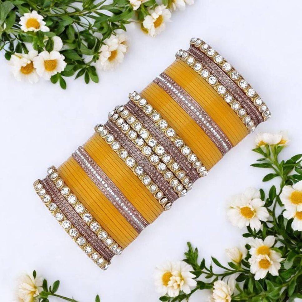 Enhance your traditional look with this beautifully crafted bridal bangle set designed for women. Made with high-quality materials and detailed stone work, this chura set adds a royal touch to any wedding or festive outfit. The smooth finish ensures comfortable wear, while the elegant design gives a premium and graceful appearance. Perfect for brides, functions, festivals, and daily ethnic styling.