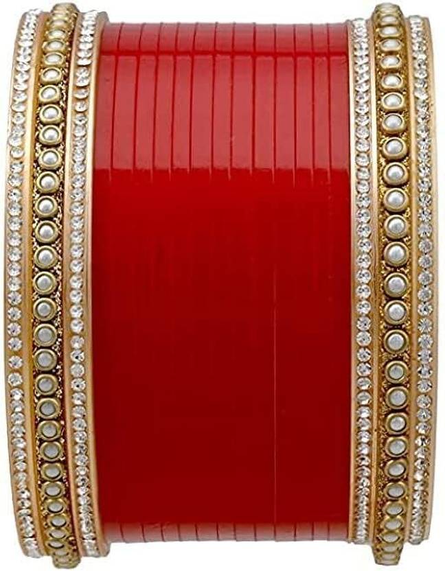 Add a touch of timeless elegance to your ethnic look with this stunning red Seep bangles set. The vibrant red bangles are paired with beautifully crafted kada bangles embellished with pearl beads and sparkling stones, giving a rich and graceful appeal. Perfect for brides, festive occasions, traditional ceremonies, or everyday ethnic styling. The bangles offer a comfortable fit while maintaining a premium handcrafted finish.
