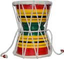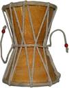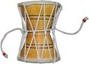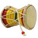 Classical Indian hand percussion Damru is well known folk instrument for drumming in all over India. Damru is mainly made in wood, metal or skull with both ends covered by animal skin (goat skin) crossed tied-up strings or cords made from cotton, leather or jute. Damru is an hour glass shaped drum, typically played with the bare hands, a player wave the instrument by twisting the wrist back and forth. A Damru player adjusts the pitch of the instrument by adjusting the pressure that is applied to these strings. Damro is associated with Hindu God Lord Shiva, it is Lord Shiva favourite musical instrument that is why Damru is also known as a power drum, which invokes spiritual energy.