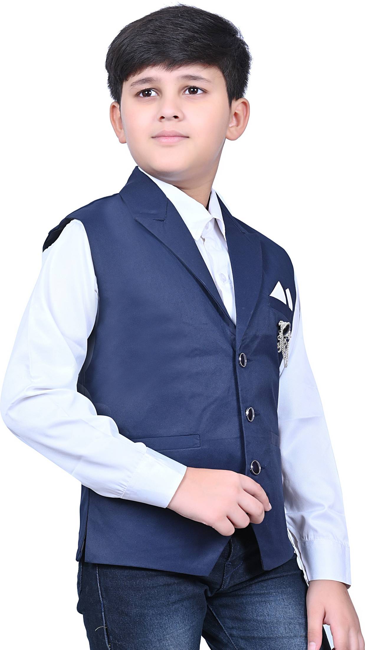 Update your little boy wardrobe with the Blazer from SG YUVRAJ. This boys Blazer is not just stylish but also comfortable and that will make a perfect addition to their closet. Made from Polyseter Fabric, Front Stylish Pockets, this boys clothes comprises of a full sleeve Blazer will make your little one look ready for an ethnic. Featuring Blazer has Solid pattern, Shirt collar and long sleeves. We are a leading brand in Kids wear with wide range of Kids clothing which includes Kids ethnic wear,Kids Straight kurta,kurta pajama Kids sherwani and a lot more.