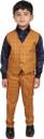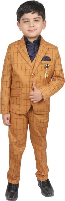 This suit consists of a waist Coat ,a pair of trousers, a shirt a waist coat and tie . Checkered with the brooch ,has button closure ,Two pockets ,shirt has Shawl Collar for Comfortable use.
