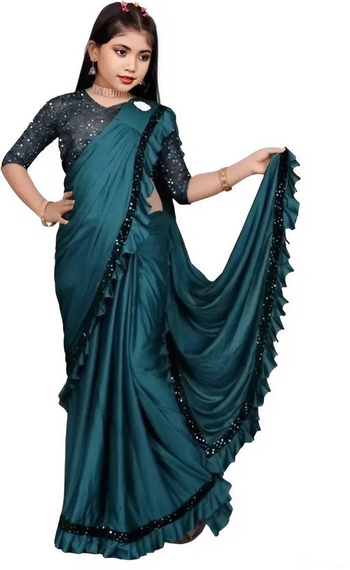 This is our most beautiful saree for the most gorgeous baby kids. This is the fully embellished saree made out from the soft lycra material. It was beyond your imagination and expectation.We made many color options in which you can enjoy any of them as per your choice, mood and your occasion and also provided an unstitched blouse piece so you can stitch it as per your baby's fit, style and comfort zone.