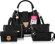 SGM Fashion Women Black Handbag (Pack of: 5)