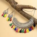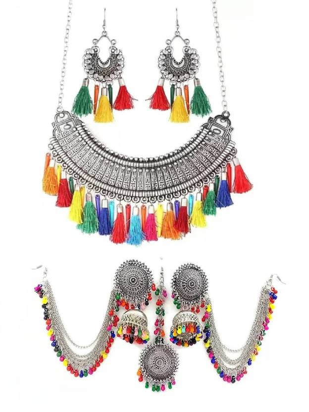 Elevate your style with this stunning jewellery set, designed to add a touch of elegance and tradition to any outfit. Crafted with intricate detailing and premium-quality materials, this set includes a beautifully coordinated necklace, matching earrings, and complementary accessories that complete your festive or bridal look. Whether you're attending a wedding, cultural celebration, or party, this jewellery set makes a bold fashion statement while maintaining timeless grace. Lightweight and comfortable for long wear, it features a secure clasp and skin-friendly finish suitable for all skin types. The rich finish and intricate design mimic the beauty of traditional handcrafted jewellery, making it perfect for ethnic wear like sarees, lehengas, and salwar suits. Ideal for gifting as well, this set blends sophistication with affordability. Make every moment special with this elegant jewellery set that adds shine to your presence and charm to your look.