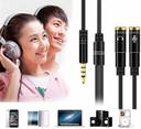 SGMSC Black Gold Plated Headphone Mic Audio Y Splitter Cable 3.5mm with Separate Headse Phone Converter (Android)