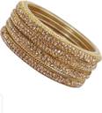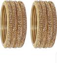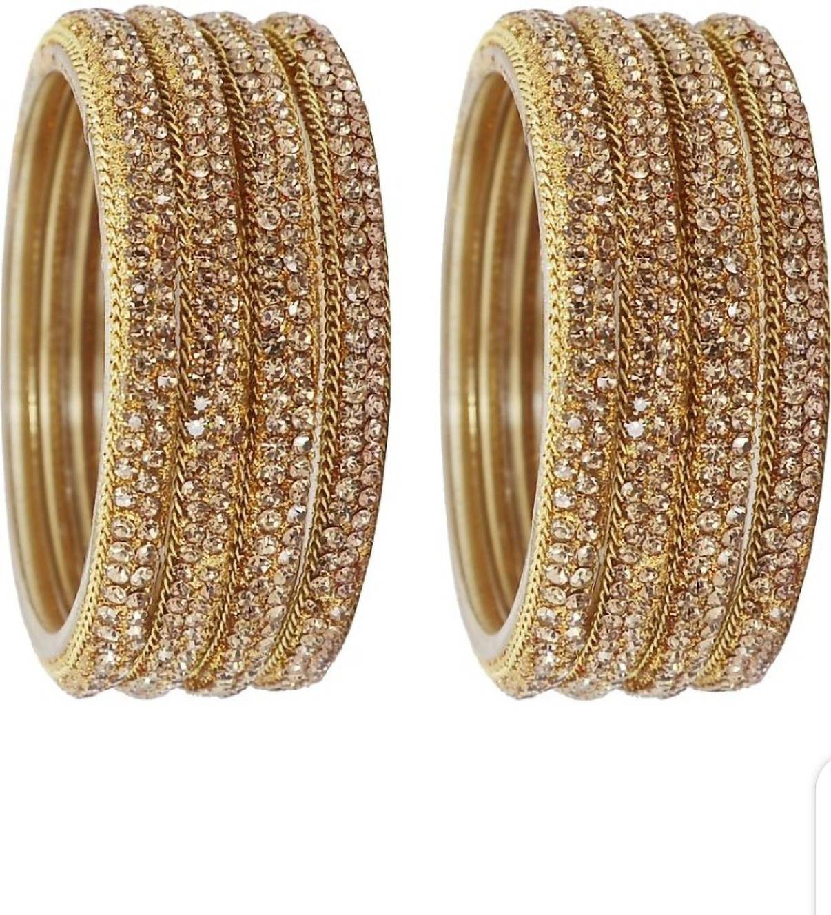 SGN Fashion catching wonderful latest stylish design bangles by the artisans of Jaipur, Rajasthan, India. This bangle set comprises 8 piece glass bangles embellished with glossy golden zircons & crystals. This unique Indian handicraft is an all occasion gift to add grace to any outfit. Pair it with any traditional, ethnic, designer, casual or any party wear & crate your own style statement.