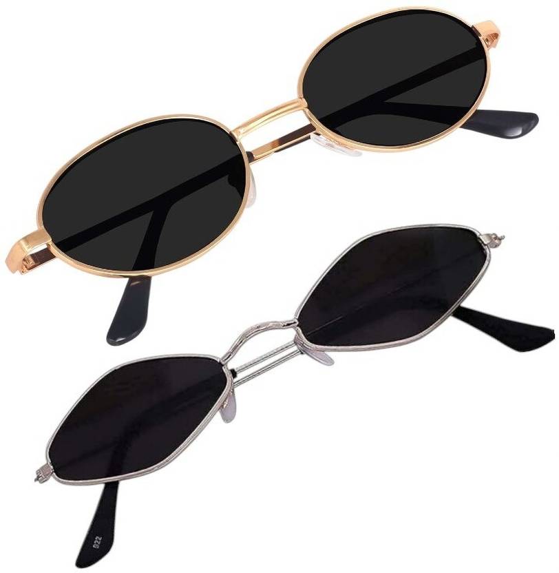 UV Protection Cat-eye, Oval Sunglasses (54) (For Men & Women, Black)