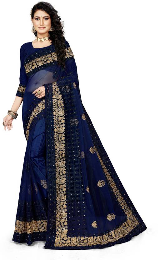Embroidered Bollywood Net Saree (Blue)