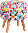 ShadowKart Solid Wood Standard Ottoman (Finish Color - Jaipuri-White Flower, Pre Assembled)
