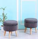 ShadowKart Solid Wood Standard Ottoman (Finish Color - Black Patti Star Grey, Pre Assembled)