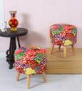 ShadowKart Solid Wood Standard Ottoman (Finish Color - Jaipuri-Multi Flower, Pre Assembled)