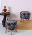 ShadowKart Solid Wood Standard Ottoman (Finish Color - Jaipuri-Rangoli Aqua, Pre Assembled)
