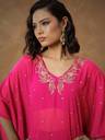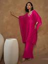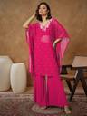 Fuchsia Embroidered Kaftan With Cami & Flared Pants