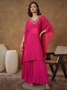 Fuchsia Embroidered Kaftan With Cami & Flared Pants Embroidered Kurta, Trouser/Pant & Dupatta Set