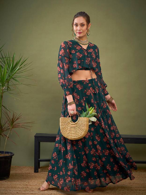 Shae by SASSAFRAS Floral Print Stitched Lehenga Choli (Green)