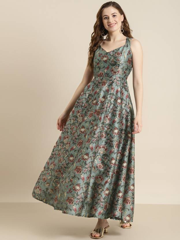 Shae by SASSAFRAS Women Fit and Flare Green Maxi/Full Length Dress