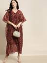 Shae by SASSAFRAS Women Kaftan Maroon Ankle Length Dress