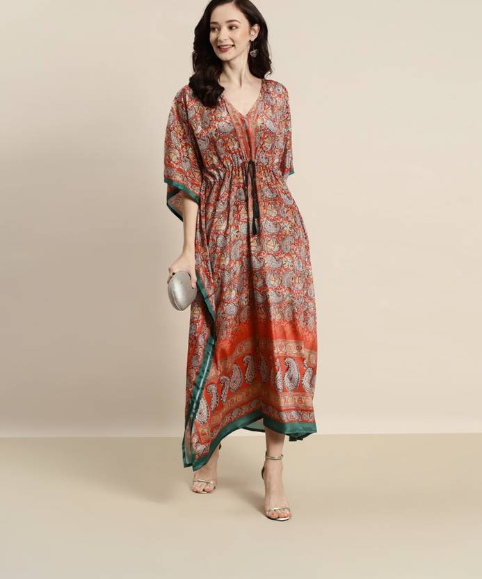 Shae by SASSAFRAS Women Kaftan Orange Ankle Length Dress